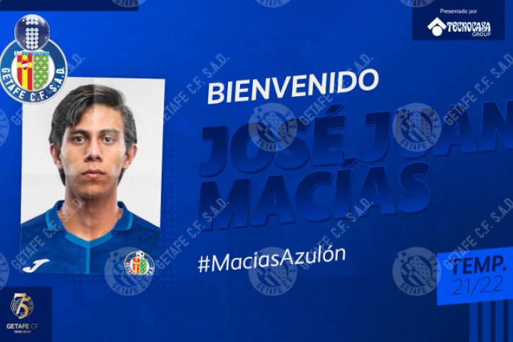 El Getafe C.F, S.A.D. y el Chivas de Guadalajara han llegado a un acuerdo para la cesión de José Juan Macías, con una opción de compra por parte de la entidad azulona. El delantero mexicano, internacional absoluto con su selección, ha militado también en Club León FC. Ha anotado 42 goles en Liga y es campeón de la CONCACAF Champions en la temporada 17/18, y máximo goleador de dicha competición.