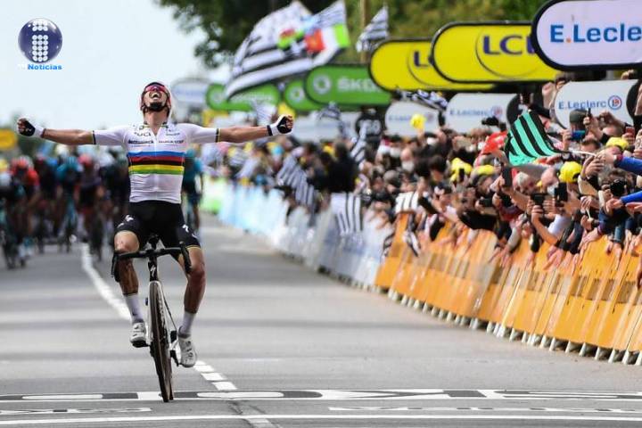 NOTICIAS 27/06/2021Van Der Poel gana etapa en Tour de Francia 2021Rara vez los cuentos de hadas mil veces anticipados cristalizan en realidad. Es prácticamente un milagro que así suceda, pero por algo nos gusta el deporte: porque hace posibles lo que normalmente sólo soñamos. Mathieu van der Poel (Alpecin-Fenix) cumplió a la segunda el anhelo de su abuelo Raymond Poulidor y se vistió con el maillot amarillo en Mûr-de-Bretagne.