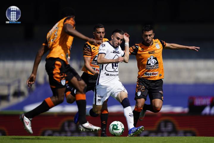 NOTICIAS 29/11/2020Araña Pumas boleto a "Semis" Luego de una llave reñida, de 180 minutos intensos y donde ambos escuadrones dejaron en claro su calidad ofensiva y defensiva, Pumas se impuso por 1-0 ante Pachuca, en el marcador global y accedió a las Semifinales del certamen. En la Vuelta de los Cuartos de Final, esta mañana, ambos equipararon fuerzas y el resultado fue un 0-0, que favoreció a los felinos.