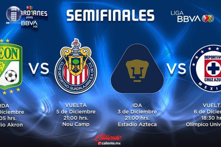 León vs Guadalajara y Pumas vs Cruz Azul serán las Semifinales del torneo Guard1anes 2020 de la Liga MX, tras concluir esta noche la fase de Cuartos de Final.