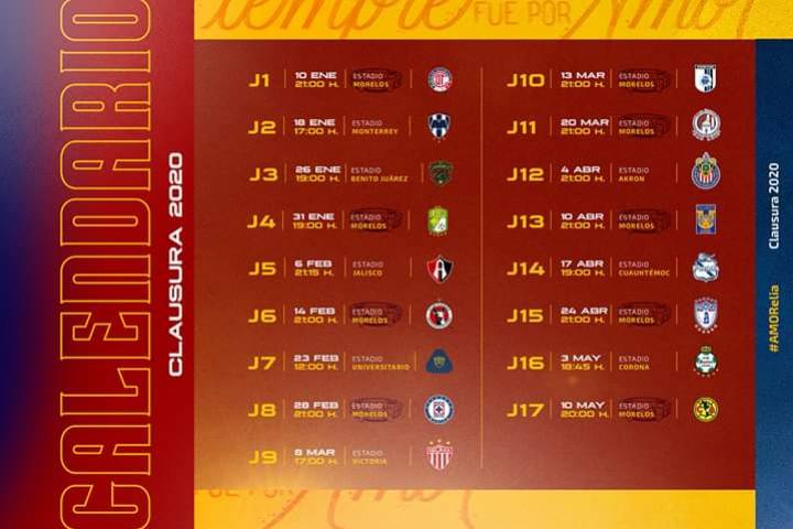 El equipo Monarcas Morelia cambia de horario para el torneo Clausura 2020 de la Liga MX, luego de darse a conocer el calendario en el que arrancan de local ante los Diablos Rojos de Toluca, el viernes 10 de enero en punto de las 09:00 de la noche; de los 9 juegos en el Morelos, el conjunto michoacano solo jugará a las 19:00 horas frente al León en la Jornada 4.