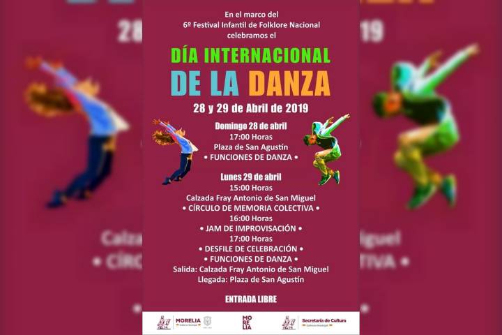 NOTICIAS 27/04/2019Disfruta a Morelia como un gran escenario en la celebración del Día Internacional de la Danza Morelia es un gran escenario y sus plazas son el espacio propicio para llenarlas de arte y cultura, y bajo ese eje, la Secretaría de Cultura Municipal celebrará el Día Internacional de la Danza este 28 y 29 de abril con la participación de 38 grupos.