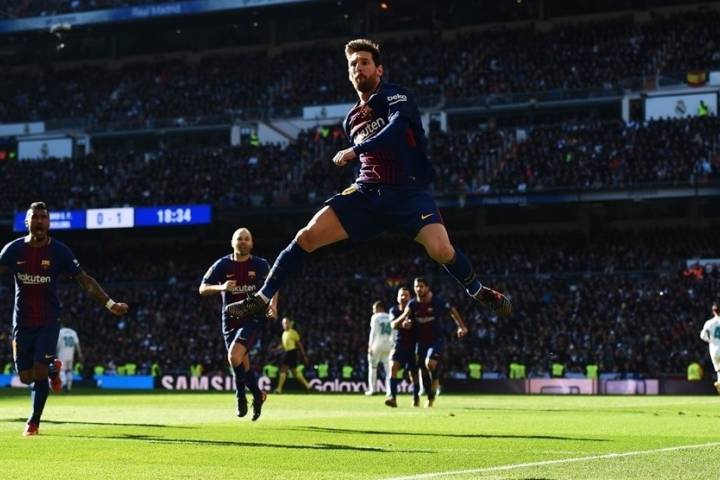 El Barcelona venció por 0-3 al Real Madrid en el Estadio Santiago Bernabéu y ya aventaja en 14 puntos al actual campeón de la Liga, aunque los blancos tienen un encuentro pendiente. Luis Suárez, Lionel Messi y Aleix Vidal dieron al equipo azulgrana su tercer triunfo seguido en Liga en el campo de su máximo rival.