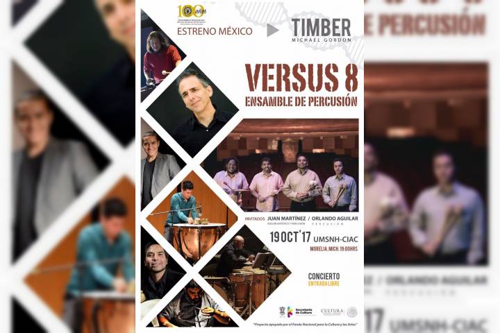El grupo de percusiones "Versus 8" participará de los festejos que con motivo del Centenario de la Universidad Michoacana de San Nicolás de Hidalgo desde la academia, la investigación y las Bellas Artes.
