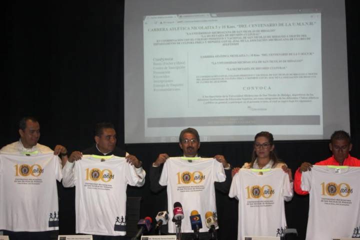 NOTICIAS 01/09/2017Presenta UMNSH Carrera Atlética del CentenarioRumbo al Centenario de la Universidad Michoacana de San Nicolás de Hidalgo (UMSNH), autoridades de la máxima casa de estudios en el estado, presentaron la la Carrera Atlética 5 y 10 kilómetros, a celebrarse el próximo domingo 01 de octubre en el centro histórico de Morelia, la cual espera reunir a dos mil personas.