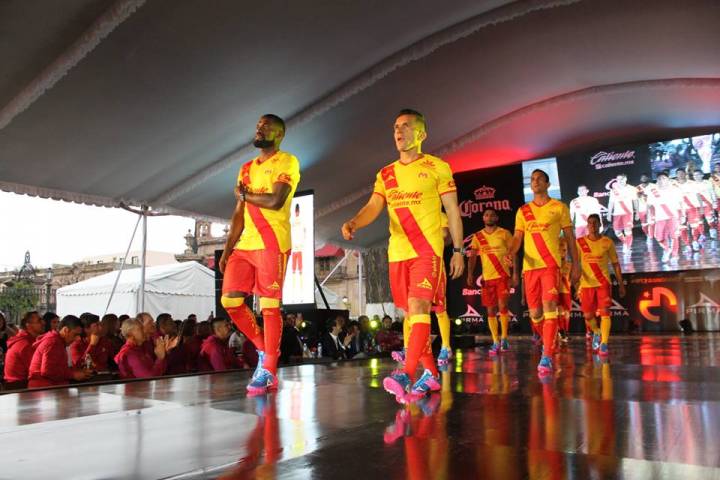 Por tercer año consecutivo, la playera del equipo Monarcas Morelia, mantendrá la emblemática franja roja en su vestimenta estelar, para los torneos Apertura 2017 y Clausura 2018 de la Liga MX, luego de que esta tarde en el Centro Histórico se presentará la nueva piel del conjunto michoacano. El segundo uniforme es de color guinda y el tercero rosa con rayas horizontales.