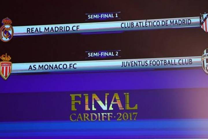 Los dos últimos finalistas de la Liga de Campeones de la UEFA, Real Madrid ?el vigente campeón- y Atlético de Madrid se medirán este año en semifinales buscando una plaza en la finalísima de Cardiff del próximo 3 de junio. AS Monaco y Juventus de Turín se verán las caras en la otra semifinal de este torneo cuyo ganador representará al Viejo Continente en la Copa Mundial de Clubes de la FIFA EAU 2017.