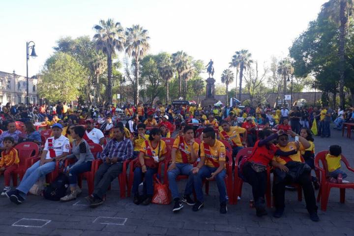 Entre porras y gran emoción, niños, jóvenes y adultos siguieron de cerca esta justa deportiva, a través de la mega pantalla que fue colocada frente al monumento ecuestre de Morelos.