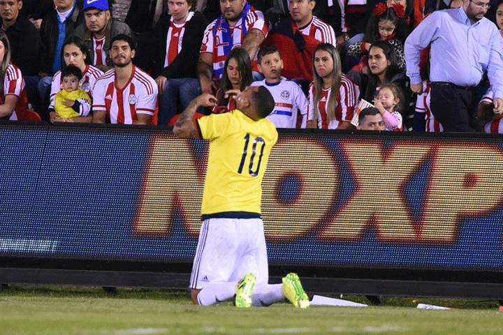 NOTICIAS 07/10/2016Colombia pega en ParaguayColombia sacó de Asunción una trabajosa victoria de 1-0 frente a Paraguay, este jueves por la novena fecha de la clasificatoria sudamericana al Mundial Rusia-2018, que le permitió abandonar la quinta posición para escalar en la tabla con 16 unidades.