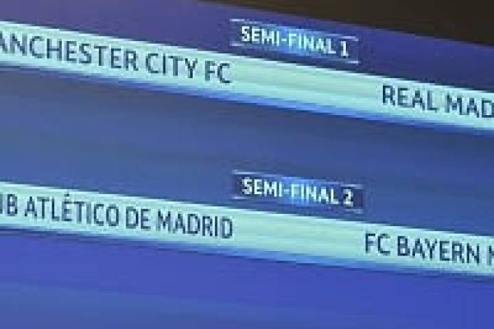 NOTICIAS 15/04/2016Listas las semis de la Champions LeagueManchester City-Real Madrid y Atlético de Madrid-Bayern de Múnich son los duelos de semifinales de la Liga de Campeones de la UEFA que decidió el sorteo celebrado en Nyon (Suiza) el viernes 15 de abril.
