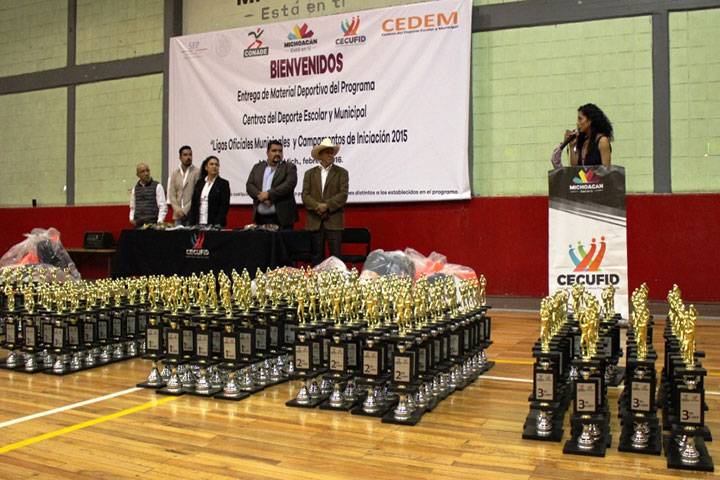La Comisión Nacional de Cultura Física y Deporte (Conade), a través de la Casa del Deporte en el Estado (Cecufid), entregaron material deportivo como parte del programa federal Centros del Deporte Escolar y Municipal "Ligas Oficiales Municipales y Campamentos de Iniciación 2015". El CEDEM, es un esquema implementado por la Conade del 2013 al 2015 en 17 estados de la República; en Michoacán se ejecutó por conducto de la Comisión Es...