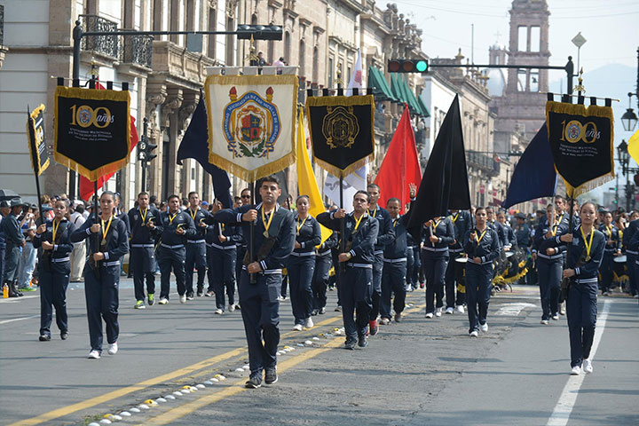 Exitosa participación tuvo la Banda de Guerra de la Universidad Michoacana de San Nicolás de Hidalgo durante el desfile conmemorativo del CV Aniversario del inicio de la Revolución Mexicana en esta capital; los alumnos nicolaitas fueron vitoreados a lo largo del trayecto por la avenida Madero, dejando constancia de la disciplina en su desempeño, la cual les ha llevado a ser cinco veces campeones nacionales entre las bandas de guerra.