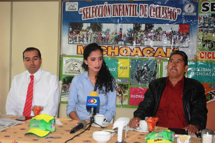 En rueda de prensa, José Guadalupe Benítez, presidente de la Asociación Michoacana de Ciclismo(AMC), acompañado por la titular de la Comisión Estatal de ... Ver más...