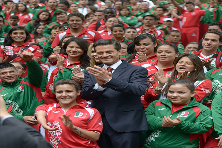 Al recibir en la Residencia Oficial de Los Pinos a deportistas que participaron en los Juegos Panamericanos y Parapanamericanos que se realizaron este año en Toronto, Canadá, el Presidente de la República, Enrique Peña Nieto, les expresó: "Ustedes son la mejor prueba y la mayor acreditación de que sí es posible que México pueda ser una mejor nación para su sociedad, ustedes así lo están demostrando".