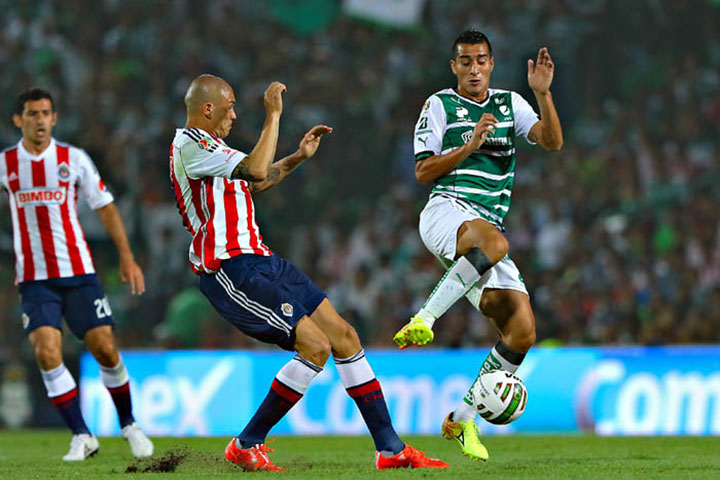 Santos empató sin goles con Chivas en el partido de ida de semifinales del Clausura 2015 en la Liga MX, el cual se realizó en el Estadio Corona en TSM.