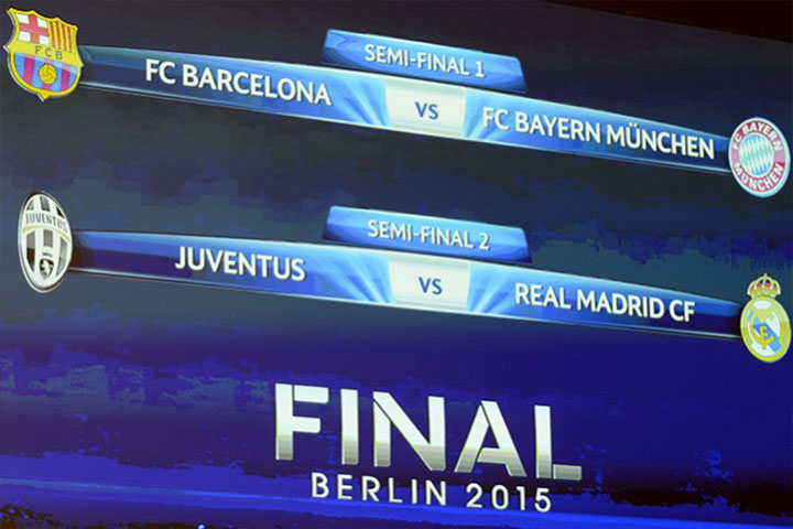 NOTICIAS 24/04/2015Definidas las semifinales de la Champions 2014 - 2015 El sorteo de las semifinales de la Liga de Campeones 2014-15, celebrado hoy en la sede de la UEFA en Nyon, dejó la reedición de la Séptima del Real Madrid ante el Juventus y el regreso a casa de Pep Guardiola, el técnico más laureado de la historia del Barcelona, que se mide a su Bayern Múnich.