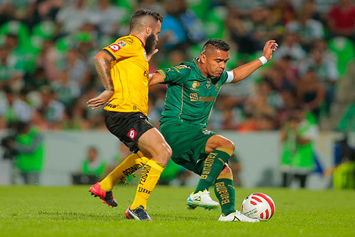 Al minuto 36, Andrés Rentería encontró el gol para la causa santista. José Abella mandó un centro perfecto desde la banda derecha y apareció el futbolista colombiano para cabecear directo a las redes. Perdía Leones Negros en... Ver más...