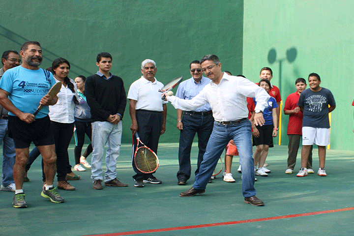 NOTICIAS 11/04/2015Abud llega a los frontones de IndecoLuego de 15 años, los frontones de la unidad deportiva Morelos-Indeco albergaron nuevamente una competencia, al ponerse en marcha el "Gran Torneo de Frontenis", de Segunda Fuerza, organizado por el Instituto Municipal de Cultura Física y Deporte, con la participación de 16 duplas. El edil moreliano, Salvador Abud Mirabent fue el encargado de dar el saque inicial.