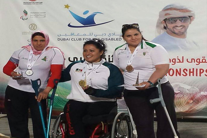 La campeona paralímpica Ángeles Ortiz se adjudicó la medalla de oro en la primera fecha del Grand Prix de Atletismo IPC 2015 que se realiza en Dubái, Emiratos Árabes Unidos, al conseguir una marca de 10.24 metros en lanzamiento de bala, categoría F57.