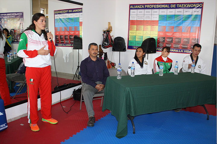 En presencia de la medallista olímpica María del Rosario Espinoza y Jannet Alegría, cuarto lugar en los Juegos Olímpicos de Londres 2012, Rosa Emma Reyna Peñaloza, inauguró su propio Dojan "Félix Ireta" de la Alianza Profesional de Taekwondo.