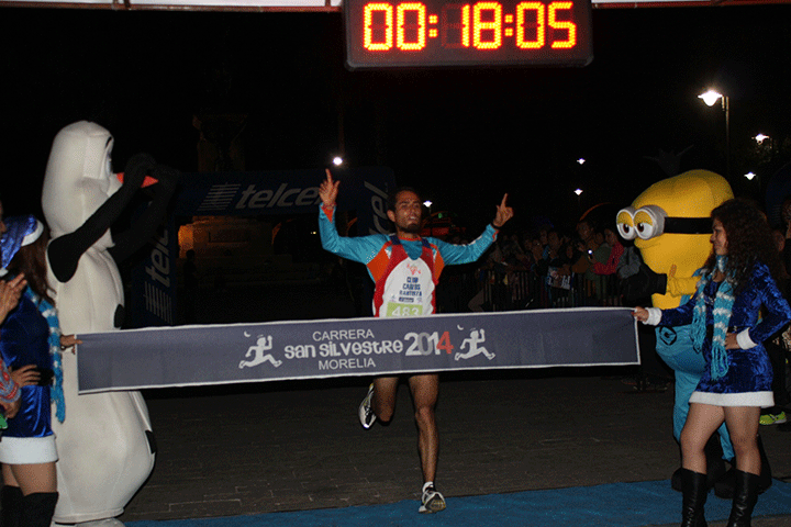 NOTICIAS 01/01/2015Con éxito la carrera de San Silvestre en MoreliaDiego Bautista y Misha Elena Ruiz se adjudicaron la 3ª edición de la Carrera Atlética de San Silvestre 5.9k., con la participación de 600 personas. Justa deportiva organizada por el Instituto Municipal de Cultura Física y Deporte (IMDE), en coordinación con el Club Corredores de Michoacán, la cual repartió una bolsa en efectivo superior a los 25 mil pesos.