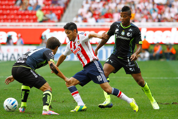 Santos venció por la mínima diferencia a Guadalajara en partido correspondiente a la Jornada 5 del Apertura 2014 en la Liga MX, el cual se realizó en el Estadio Omnilife.