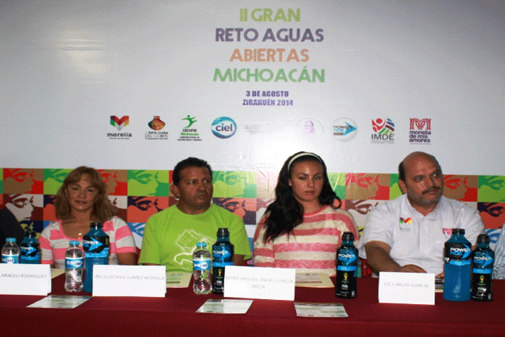 NOTICIAS 28/07/2014Presentan II Gran Reto de Aguas Abiertas MichoacánEl próximo domingo tres de agosto en el Lago de Zirahuén, Michoacán, se llevará a cabo el II Gran Reto de Aguas Abiertas Michoacán, en el cual tomarán parte cerca de 300 tritones y sirenas de diversos puntos del estado, así como de la República Mexicana. Competencia organizada por la Comisión de Aguas Abiertas en la entidad, en coordinación con los ayuntamientos de Salvador Escalante, Pátzcuaro y Quiroga.