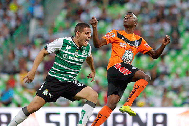 NOTICIAS 11/05/2014Pachuca primer finalista del Clausura 2014Santos venció cuatro goles por dos a Pachuca en el partido de vuelta de la semifinal del Clausura 2014 en la Liga MX, el cual se realizó en el Estadio Corona. Los Tuzos se convirtieron en el primer finalista debido al criterio de gol como visitante, ya que el global terminó 4-4.