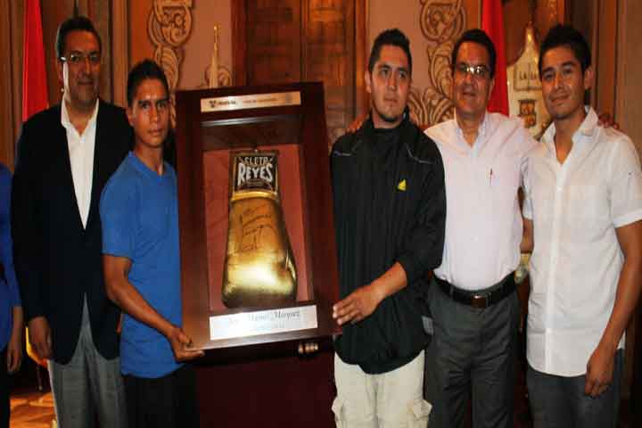 Como parte de las acciones del Ayuntamiento de Morelia, para inculcar el deporte en los pequeños y motivar a la sociedad a la activación física, esta tarde, se entregó a diferentes escuelas de box michoacanas, un guante enmarcado y firmado, por el multicampeón y referente del pugilismo mexicano, Juan Manuel Márquez, durante una ceremonia realizada en Salón de Cabildo, de Palacio Municipal.