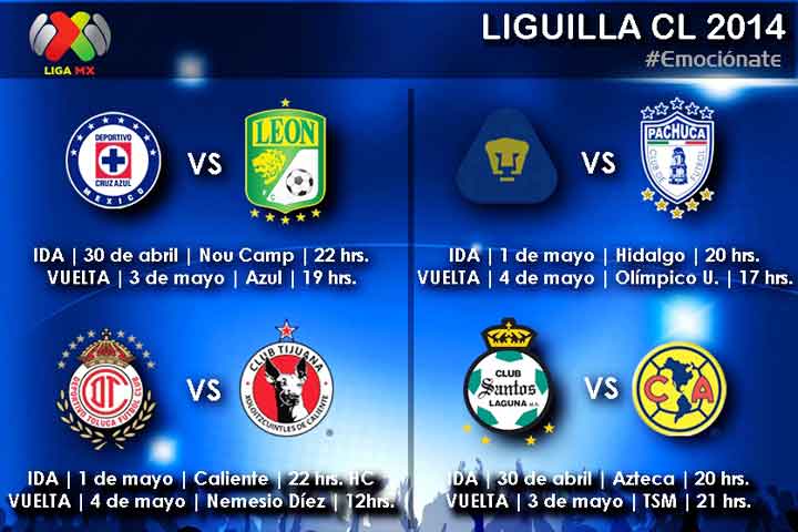 NOTICIAS 28/04/2014Listos los horarios para Liguilla del Torneo Clausura 2014