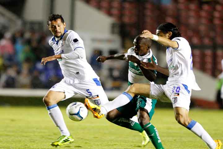 Los Guerreros de Santos Laguna sacaron valiosa victoria del feudo de los Gallos Blancos de Querétaro al pegarles tres goles a dos en la Ida de los Cuartos de Final del Torneo Apertura 2013 de la Liga MX.