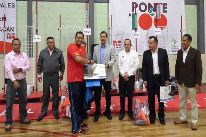 Con la finalidad de mejorar la calidad de vida de los mexicanos, la Comisión Estatal de Cultura Física y Deporte (Cecufid), entregó este martes un total de 42 kits de material deportivo para 42 municipios del estado, quienes se suman al programa nacional "Ponte al 100" que promueve la Comisión Nacional de Cultura Física y Deporte (Conade).