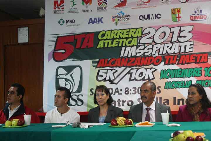 El instituto Mexicano del Seguro Social (IMSS) en Michoacán, dio a conocer la oficialmente la convocatoria de la Quinta Carrera Atlética IMSS 2013, que se realizará en la ciudad de Morelia, el domingo diez de noviembre en punto de las ocho treinta horas, a partir de las instalaciones del Teatro "Stella Inda".