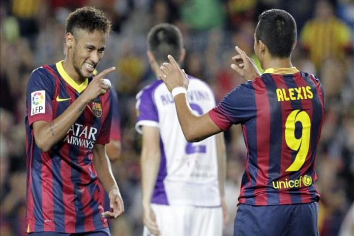 NOTICIAS 05/10/2013Barcelona 8 de 8El chileno Alexis Sánchez firmó una noche estelar en el Camp Nou, con dos de los cuatro tantos del FC Barcelona (4 por 1), frente a un Valladolid que se adelantó en el tanteador y que en la primera parte tuteó al conjunto catalán.