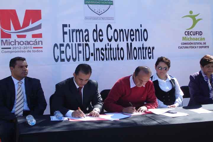 La Comisión Estatal de Cultura Física y Deporte (CECUFID), firmó convenio de colaboración con la Universidad Montrer de Morelia como en objetivo de fomentar el desarrollo deportivo de los jóvenes a través de una educación integral, ceremonia que tuvo lugar en las instalaciones del Centro Deportivo Ejército de la Revolución (Cder).