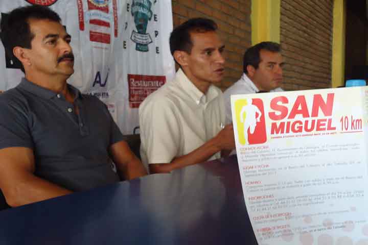 NOTICIAS 11/09/2012Presentan la Edición XLII de la Carrera Atlética de San Miguel en Quiroga Con una bolsa superior a los 100 mil pesos, el próximo 29 de septiembre en el Barrio del Calvario de San Miguel en el municipio de Quiroga, Michoacán, se llevará a cabo la XLII de la Carrera Atlética de 10 kilómetros.