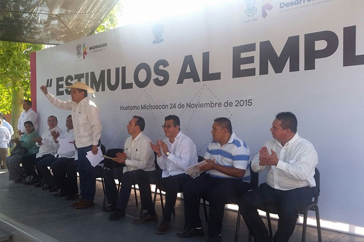 NOTICIAS 24/11/2015Apoya SEDECO a 40 productores en HuetamoRatificando el impulso decidido a todos los sectores productivos de Michoacán, esta tarde se puso en marcha el programa "Estímulos al Empleo" mediante la entrega de apoyos y estímulos a 40 diferentes talleres dedicados a la fabricación del tradicional guarache terracalentano, beneficiando de manera directa a la preservación de 250 empleos, según lo dio a conocer Antonio Soto Sánchez, titular de la Secretaría de Desarrollo Económico (S... Ver más...