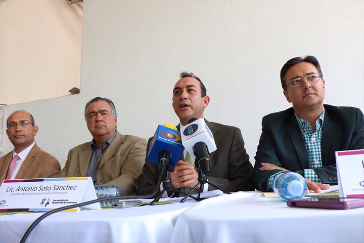 El dÃa de hoy, el Secretario de Desarrollo Económico, el Lic. Antonio Soto Sánchez, se reunió con el Lic. Juan Carlos Barragán, Director del Instituto de Capacitación para el Trabajo en el Estado de Michoacán (ICATMI); el Lic. César Erwin Sánchez, Director General del Fideicomiso de Parques Industriales del Estado de Michoacán (FIPAIM); el Lic. Oscar Celis Silva, Director del Centro de Convenciones y Exposiciones de Morelia (CECONEXPO... Ver más...