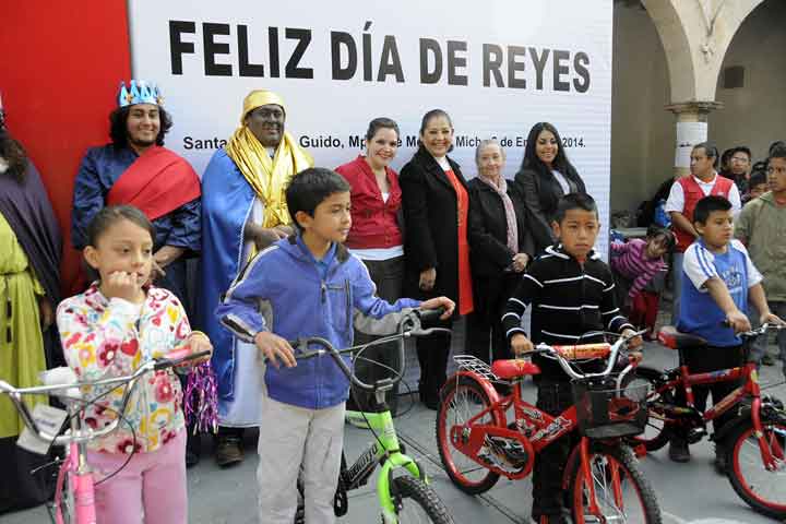 La presidenta del Patronato del Sistema para el Desarrollo Integral de la Familia (DIF) Michoacán, Patricia Mora de Vallejo, entregó juguetes con motivo del Día de los Reyes Magos a niños provenientes de 45 colonias del sur de Morelia.