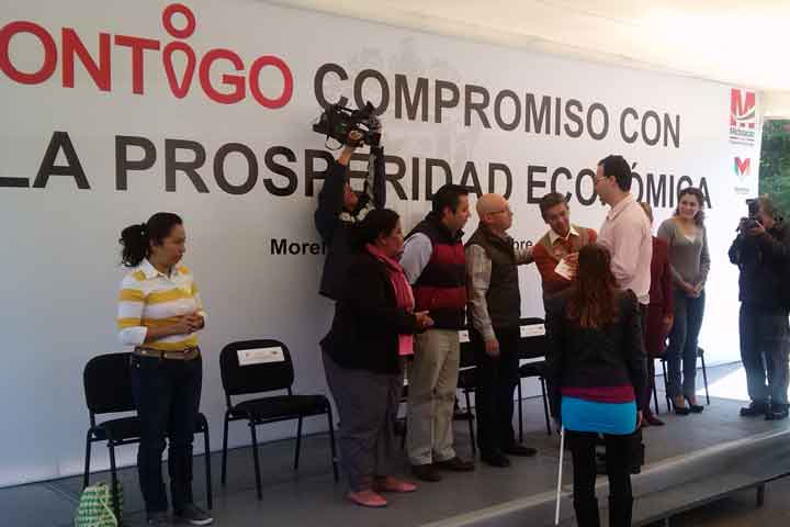 El secretario de Política Social del Gobierno del Estado, Rodrigo Iván Maldonado López, entregó recursos para la puesta en marcha de 14 proyectos productivos en Morelia y sus tenencias dentro del programa "Contigo, Compromiso con la Prosperidad Económica", esquema que ha incluido beneficiarios con algún tipo de discapacidad.