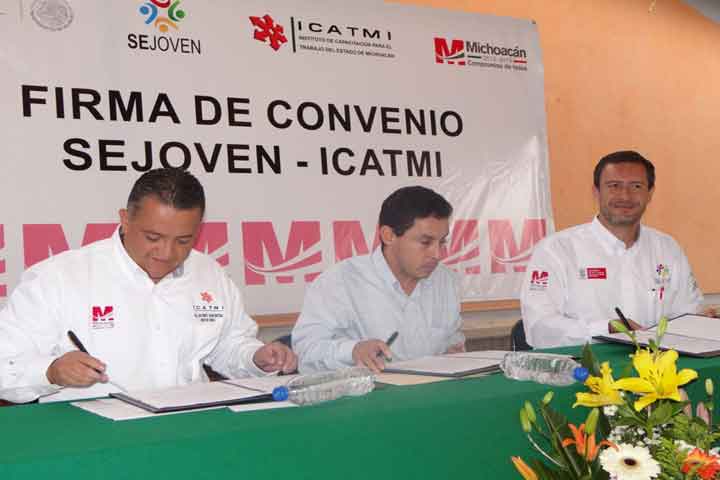 José Bertín Cornejo Martínez, director general del Instituto de Capacitación para el Trabajo del Estado de Michoacán (ICATMI), firmó un convenio de colaboración interinstitucional con Francisco Xavier Lara Medina, secretario de los Jóvenes (Sejoven), para capacitar a mil quinientos michoacanos y dar facilidades a las nuevas generaciones para emprender su propio negocio.