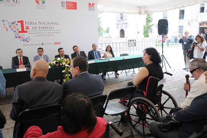 Con el propósito de abrir oportunidades laborales a todos los segmentos de la sociedad, el Servicio Nacional del Empleo (SNE) y los gobiernos Federal y Estatal llevaron a cabo la "Primera Feria Nacional del Empleo para Personas con Discapacidad y Adultos Mayores Morelia 2013", donde se ofertaron 485 vacantes.