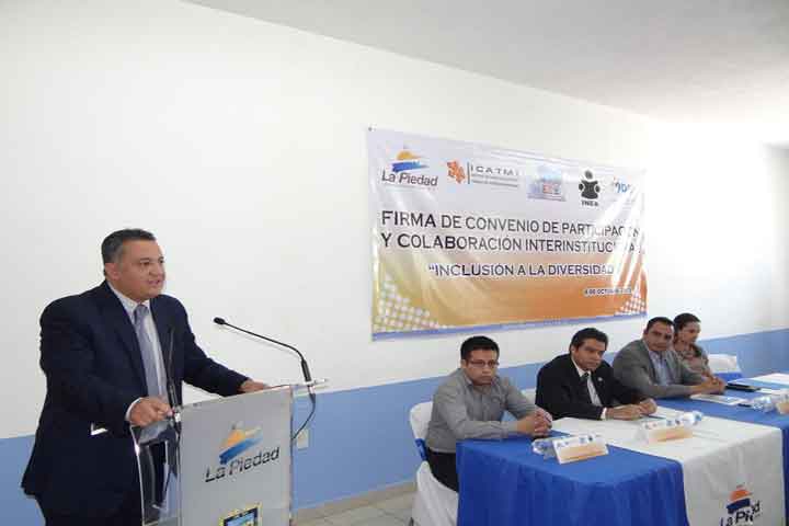 El director general del Instituto de Capacitación para el Trabajo del Estado de Michoacán (ICATMI), José Bertín Cornejo Martínez, firmó un convenio de colaboración interinstitucional con el Sistema DIF Municipal que preside Carmen Lilia Rojas Barca, para capacitar a los invidentes de la localidad.