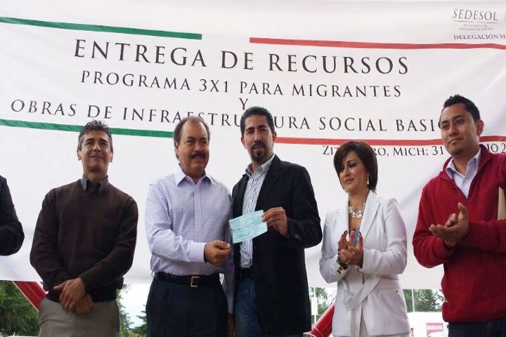 Con la finalidad de detonar el desarrollo social de las regiones azotadas por la marginación y que empujan a michoacanos a buscar mejores oportunidades de desarrollo en los Estados Unidos, la SecretarÃa de Desarrollo Social que dirige Rosario Robles Berlanga, a través de la delegación michoacana, encabezó la entrega conjunta de 7.5 millones de pesos para la mejora de infraestructura básica.