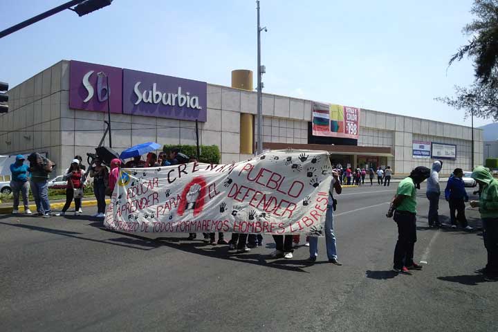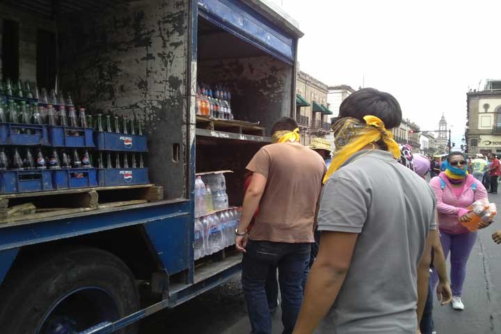 Después de que saquearan totalmente los camiones de empresas particulares y repartieran los productos entre transeúntes y ellos mismo, normalistas emprendieron la marcha del primer cuadro de la ciudad para dejar libre la circulación después de casi tres horas de bloqueo de la avenida Madero.