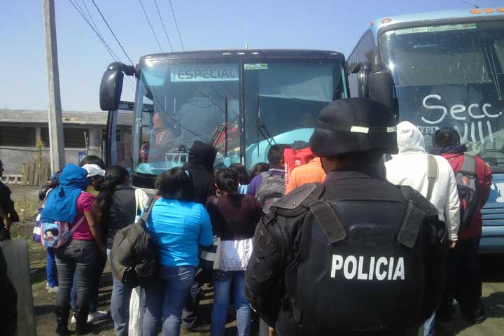Tras ser detenidos para evitar que llegaran a Morelia a movilizarse, los normalitas tuvieron que entregar uno de los camiones de la línea Purépecha en los que se trasladaban ya que tenía reporte de robo.