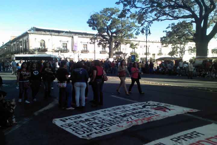 Los jóvenes avanzan por La Huerta para seguir y llegar hasta la avenida Madero, donde posteriormente está previsto que continúen hasta llegar a Palacio de Gobierno donde habrán de manifestarse.