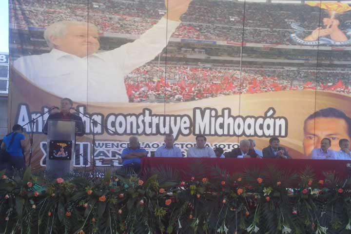 El secretario de gobierno, Jesús Reyna GarcÃa, manifestó que en conjunto con el Movimiento Antorchista se construye Michoacán, lo anterior durante su discurso en el acto polÃtico cultural que esta mañana llevó a cabo el Movimiento Antorchista Campesino para conmemorar el 22 aniversario luctuoso de uno de los fundadores en Michoacán, Wenceslao Victoria Soto.