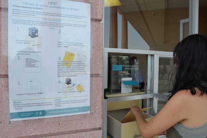 Durante los tres primeros meses del año, la Oficialía de Partes Automatizada de Término (OPAT) de Morelia ha recibido mil 673 escritos, con lo que se consolida como una herramienta útil y efectiva para la recepción adecuada de escritos de término fuera del horario usual de labores.