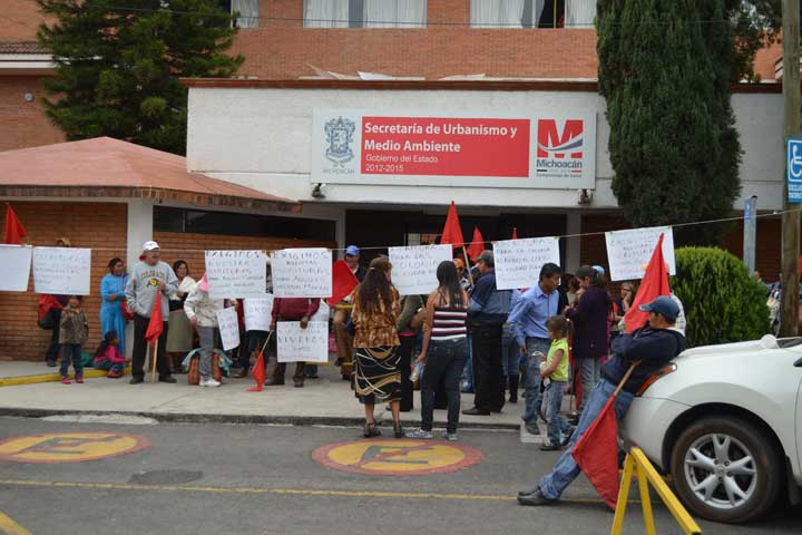 Colonos de diversos municipios del Oriente de Michoacán, simpatizantes a la Organización Antorcha Campesina, se manifestaron en las inmediaciones de la SecretarÃa de Urbanismo y Medio Ambiente (SUMA) en demanda de la entrega escrituras.